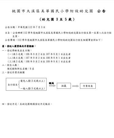 消息主題:112學年度美華附幼第十七次自行招生簡章公告
